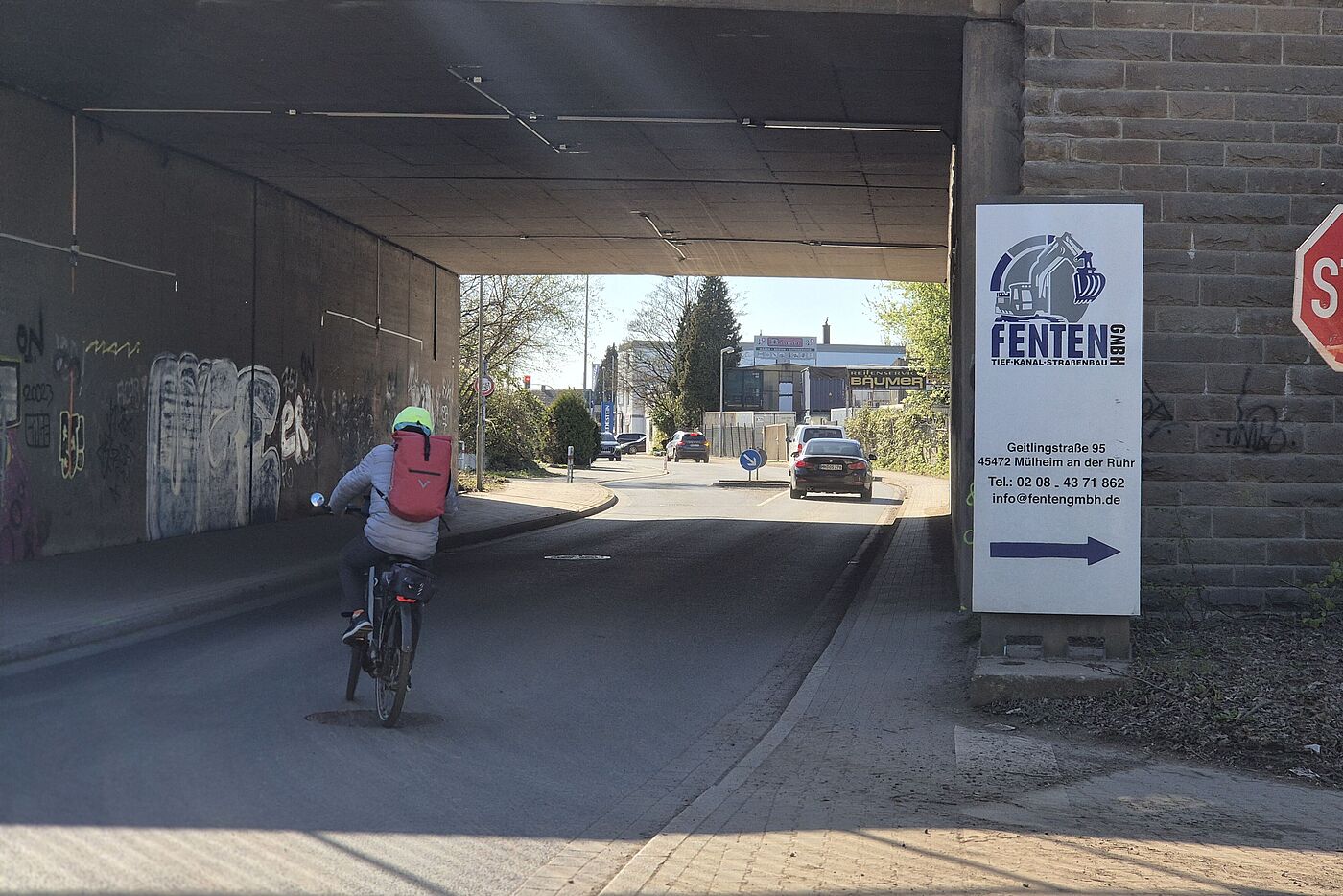 Besonders kritisch ist bereits heute die Unterführung der neu zu bauenden Brücke an der Geitlingstraße: Diese ist viel zu schmal für den Begegnungsverkehr. Konflikte zwischen Kfz-, Fuß- und Radverkehr sind alltäglich. Die derzeitige Radführung ist unterirdisch und durch Kreuzungspflicht und Enge gefährlich, es ist kein Platz für (beidseitige) Rad- und Fußwege. Der Plan auf der Webseite der Autobahn GmbH lässt vermuten, dass wieder in gleicher Breite gebaut wird. Die Stadt Mülheim muss sicherstellen, dass im Zuge der Erneuerung die Brücke deutlich breiter gebaut wird und beidseitige Rad- und Fußwege eingebracht werden können. Hier wird sonst eine bekannte Problemstelle nicht behoben, sondern für Jahrzehnte festgeschrieben – obwohl jetzt die Gelegenheit bestünde, sie grundlegend zu lösen.