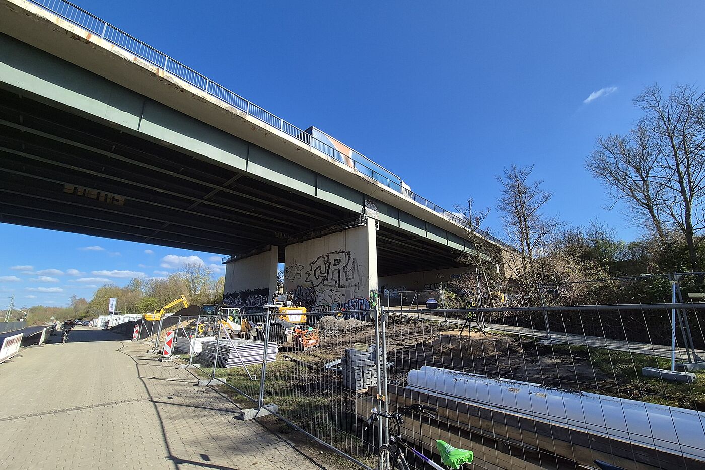 Auf der A40 zwischen Duisburg, Mülheim und Essen beginnt in Kürze der Neubau der Hardenbergbrücke über die Bahnlinie und den Radschnellweg Ruhr (RS1) sowie der angrenzenden Brücke über die Geitlingstraße. Bauvorbereitungsarbeiten haben bereits begonnen. Der Radschnellweg ist mitten drin und der Baustellenverkehr bringt viel Schmutz und Verkehr. Die Bauarbeiten sind notwendig, weil die bestehenden Bauwerke ihre Lebensdauer überschritten haben. Gleichzeitig sind sie Teil der Vorbereitungen für den geplanten sechsstreifigen Ausbau der Autobahn. Für den Radverkehr – insbesondere für den RS1 – bringt das Projekt wohl erhebliche Defizite mit sich.